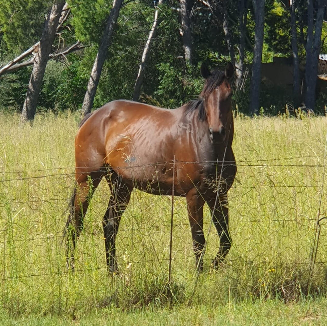 Grace is our beautiful bay thoroughbred mare. She boasts wonderful conformation and is full of confidence and elegance. Grace will produce beautiful foals with wonderful abilities. She is currently in foal to Adelt’s Zonjati Allegro, a Namibian Warmblood stallion with great showjumping lines.