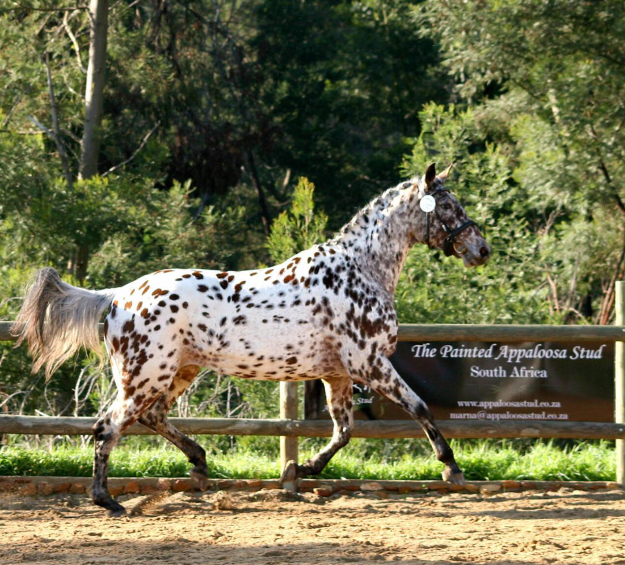 Arctic Moon is a very proud filly. At one year she already boasts a large stature and a propensity to jump. Arctic is a curious and willing filly and will make a great broodmare when she comes of age. Arctic is bred for showjumping, her sire, Adelt Zonjati Allegro is owned by Adelt Warmblood Stud and is a Namibian Warmblood from great showjumping bloodlines. Her dam, Painted Mosaic (owned by the Painted Appaloosa Stud) is a beautiful appaloosa mare built just like a warmblood.