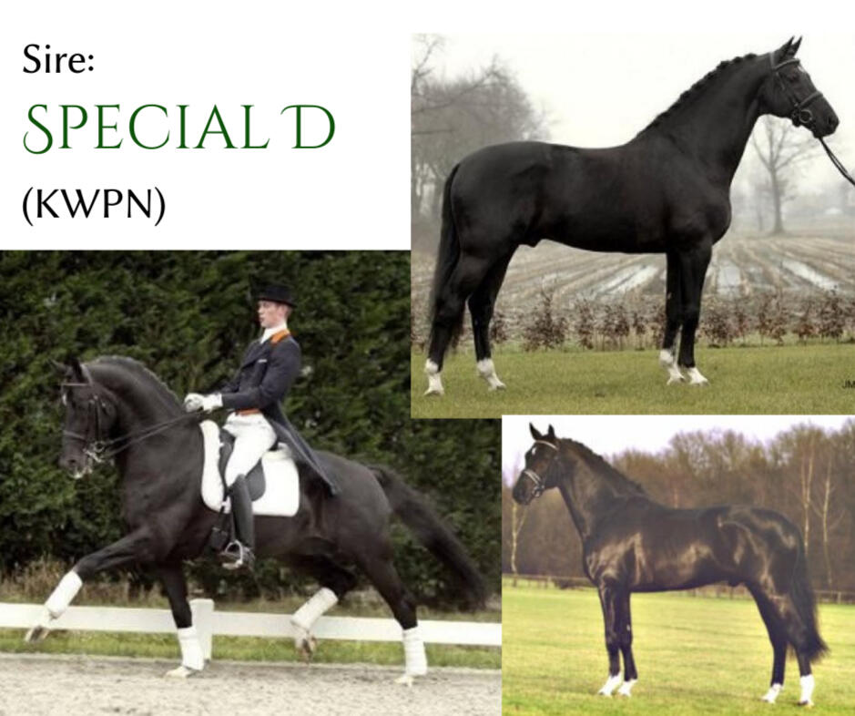 Zospecial is by Special D out of a premium Gribaldi TRAK mare. Gribaldi is an amazing broodmare sire whose entire bloodline competed successfully at Grand Prix level.