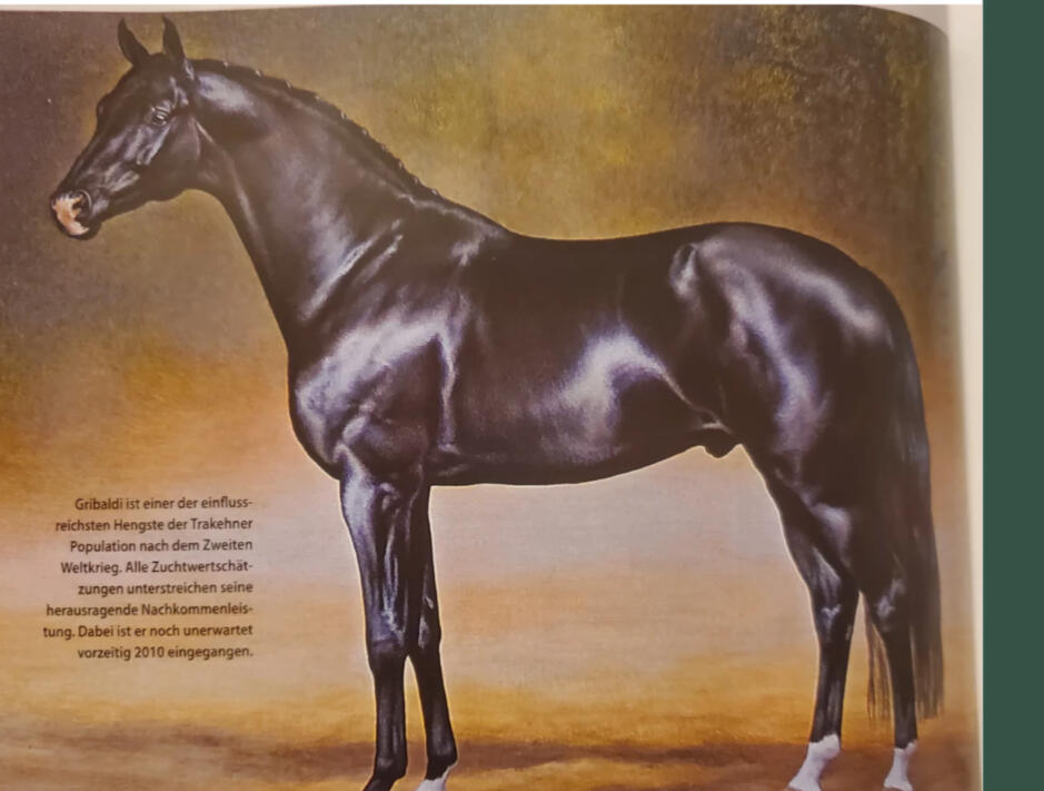 Excerpt: https://www.horsemagazine.com/thm/2014/10/gribaldi/Dutch stallion owners Mr de Jong and Joop van Uytert purchased Gribaldi after he had been proclaimed champion at the 1995 Trakehner Licensing in Neumünster. Standing in Holland, Gribaldi was approved for the KWPN, Oldenburg and the Danish Warmblood society. He benefitted from a massive and glossy advertising and publicity campaign – although his progeny were also doing a pretty good job of promoting him at the same time with many of them starring in young horse classes.Gribaldi was also doing his bit, at the age of four he won the stallion class in s’Hertogenbosch and took reserve champion honours in the Pavo Cup for four-year-old dressage horses. Later he was competing at Grand Prix level with Edward Gal with considerable success. The combination won the 2004 Zwolle International Stallion Show Kür with 73.70% and the Kür at the CHIO Rotterdam.Gribaldi was proclaimed Elite Stallion by the Trakehner society in 2003 and in 2005, based on the performance of his 6- and 7-year old offspring, the KWPN decided to proclaim Gribaldi a Keur Stallion. In order to become a KWPN Keur stallion, a sire has to have a sport index of more than 140 points with a reliability of 75%, and has to be passing superior conformation on to the offspring. In 2008 Gribaldi was proclaimed Trakehner stallion of the year.